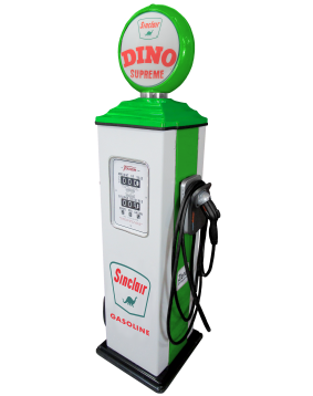 Fiberglass construction. Features a gel coated finish. and decorative gas nozzle and hose. Illuminated glass globe on top.
