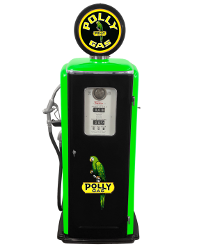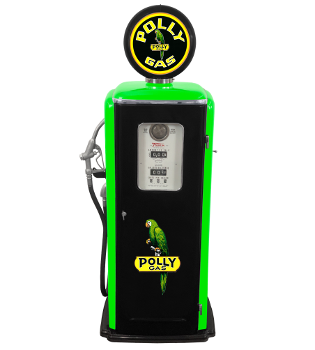 Full size replica Polly gas pump with hidden bar and 80 can mini fridge!