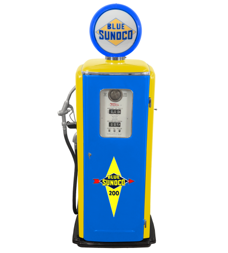 Full size replica Sunoco gas pump with hidden bar and 80 can mini fridge!